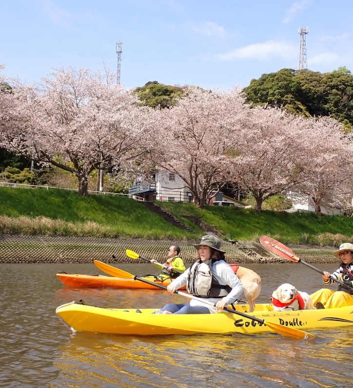 お花見カヤック 二人で漕ぐのが楽しい