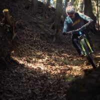Jinya riding the supreme trail down to the ocean in Izu, Japan.